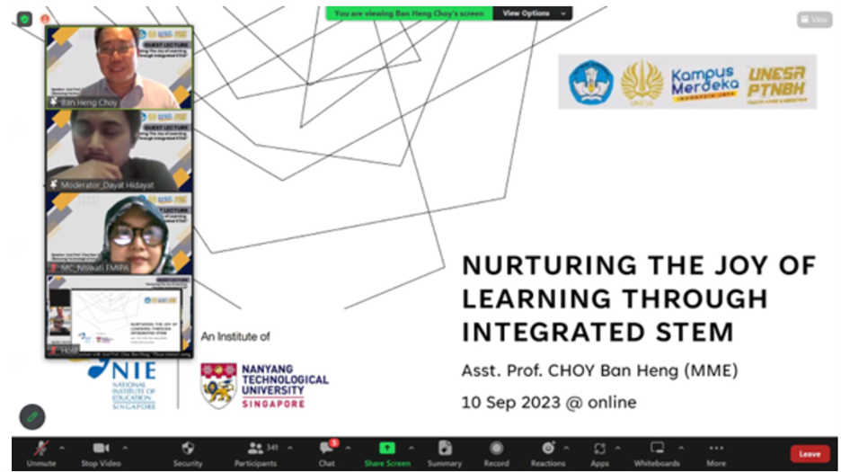 Surabaya — The Faculty of Mathematics and Natural Sciences (FMIPA) of Surabaya State University (Unesa) in collaboration with PUI EduSTEM held a guest lecture entitled "Nurturing the Joy of Learning Through Integrated STEM" by presenting Asst. P